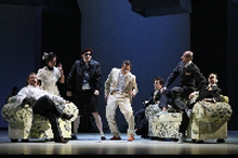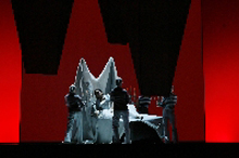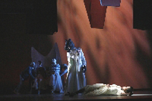 Nur zwei letzte Beispiele, die die Lust auf diese Vorstellung in unwiderstehliche Begierde verwandeln soll: Der Sturmtanz. Einer der choreographischen und dramatischen Höhepunkte dieser wahrlich an Höhepunkten nicht armen Oper: Wie synchron zur auf- und abwogenden Musik Vater und die Company über die Bühne gepeitscht werden, vorwärts, rückwärts, der Bewegung des zweifelnden Herzens nachempfunden, von den Unbilden mitgerissen werden, in einen Sog geraten, in den sich der Zuschauer selbst mit hinein genommen fühlt, das gehört zum Schatz der bleibenden Bilder, den diese Aufführung verschenkt.
