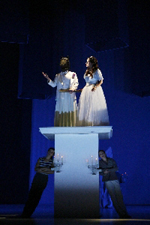 Der Rosentanz: Bevor die erbetene Rose (als Symbol autonom verantworteter Liebe) vom Vater für die Tochter gebrochen werden kann, zeigt das Ballett, auf welch schmalem Grat wir wandern, wenn wir uns auf den Weg der Liebe begeben, wie nahe Straucheln und Verirrungen bei dem Wunsch liegen, los zu lassen und neue, Glück stiftende Konstellationen denen - in diesem Falle die Tochter- zu ermöglichen, die wir doch lieben. Körpersprache und Stilisierungen, Choreographie, die in Seelenlandschaften führt, jederzeit ist zu spüren, dass die Regisseurin vom Tanzfach kommt und Intendant Ulrich Peters ein gewollter Glücksgriff gelungen ist.