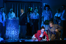Solche Bilder sind deutlich, vielleicht überdeutlich im Kontrast zur Vater-Welt. Video-Zuspielungen von Habermas bis Dutschke, Ohnesorg bis Meinhof zeigen plakativ, wie sehr einer „guten“ Gesellschaft der heftige Protest implizit innewohnt. Später wird es noch krasser, wenn Mädels in Trenchcoat und Patty-Hearst-Manier das Sturmgewehr im Anschlag halten. Fast schon vergessen, da war 1974 die gekidnappte Enkelin eines Medien-Moguls, die sich mit den Zielen ihrer Entführer identifizierte und an Banküberfällen teilnahm.