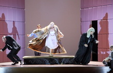 Janáčeks Landsmann und Kenner Tomas Hanus erarbeitet für die Eröffnungspremiere eigens eine neue kritische Ausgabe der sperrigen Komödienadaption. Trotzdem wirkt sein Dirigat wissenschaftlich, uninspiriert, eher sezierend als erfrischend. Während die wunderschöne Ouvertüre, die allein ein Lebensalter erzählt, noch süffig daherkommt, verlangsamt er, zu pointiert auf das expressionistische Pathos des Komponisten setzend, die Tempi, verwischt, verdeckt und stellt sich in Konkurrenz zu den oft verlierenden Sängern. Etwas mehr Leben und Kooperation wäre in diesem ausufernden Sammelsurium aus musikalischen Splittern schön gewesen, sie schimmern in den knappen romantischen Momenten durch, die Hanus begreift und herausstellt.