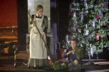 Sind Märchen logisch? Das Staatstheater Nürnberg beantwortet diese Frage in Engelbert Humperdincks Oper Hänsel und Gretel eher negativ, bebildert munter drauflos und bedient dabei viele Klischees, die sich um das Grimmsche Märchen ranken. So gibt es in dieser Bilderflut von Bühnenbildner Harald B. Thor nach einem Konzept von Andreas Wilkens allerdings auch jede Menge mit Lametta geschmückte, glitzernde Christbäume; warum wohl? Das Werk ist eben ein beliebtes Stück zur Weihnachtszeit. Da ist es dann schon egal, dass im Stück die Mutter ihre Kinder zum Beerenpflücken in den Wald schickt, mitten im Winter; und es ruft auch kein Kuckuck in der Natur, sondern die Kuckucksuhr an der Wand in diesem großbürgerlichen Heim eines Besenbinderfabrikanten der Gründerzeit. Während der Ouvertüre erfahren wir von seinem Bankrott, denn der Gerichtsvollzieher lässt eben das letzte Bild wegtransportieren. Doch scheinbar reicht das Geld in der Familie immer noch für eine gestrenge Gouvernante, und auch so richtig Hunger, Armut oder Not leiden muss da niemand; alle wirken doch recht proper. Das sind irgendwie logische Brüche, und was Fantasie, was Realität sein soll, wo der Übergang vom Traum zur Wirklichkeit stattfindet, das wird in dieser Inszenierung von Andreas Baesler nicht ganz klar. So fragt der Vater, als er beschwipst heimkehrt, wo denn die Kinder seien – die liegen vor seiner Nase in den Stockbetten, sollen sich aber angeblich im Wald aufhalten, wo Hänsel vom Weihnachtsbaum einiges in sein Körbchen „gepflückt“ hat. Allerdings ist es ein hübscher Einfall, dass der Vater das Märchen der Gebrüder Grimm von Hänsel und Gretel vorliest, während eine sich drehende Lampe den Hexenritt als fortlaufende Projektion an die Wand wirft. Verzauberung oder Grusel stellen sich trotzdem nicht ein. Die vierzehn Englein beim Abendsegen erscheinen hier paarweise als weiße Geistergestalten der theatralischen, märchenhaften Vergangenheit vom Mittelalter bis fast zum Heute, seltsam unwirklich zu reichlich Theaternebel. Traum, Fantasie, Spiel und Realität mischen sich, die Grenzen verschwimmen; so halten die Kinder Hänsel und Gretel ständig ihre Doppelgänger als Puppen in der Hand, vollführen mit ihnen allerlei Kasperletheater und Stellvertreter-Spiele, und, als wäre das noch nicht genug, erscheinen sie sich selbst auch noch lebendig als niedliche Kleinkinder, während das Sandmännchen, eine Art Clownspuppe, Glitter zum Schlafen ausstreut. Im dritten Akt, als nun endlich etwas Wald-Atmosphäre aufkommt, die Christbäume sich vervielfältigt haben und der Haussegen, also die Wohnzimmerkulisse, schief hängt, bestätigt sich, was man schon vorher ahnt: Die Böse, die Hexe, ist natürlich die Erzieherin mit ihrer weißen Schürze, mit Rohrstock und Besen bewaffnet und nun mit einer spitzen Nase versehen. Nach einigem Hin und Her mit Ver- und Entzauberung wird diese Verführerin zur süßen Völlerei schließlich zur Strafe ihrer Untaten in den Kamin-Ofen geschoben, wo sie explodiert. Hänsel und Gretel sind gerettet und die vielen verzauberten Kinder mit den Lebkuchenherzen erlöst. So kommt alles wieder ins Lot, auch die Kulisse. Diese Inszenierung schockt also keineswegs, sondern will mit freundlichen, naiven Bildern unterhalten, unterstützt vom Wiedererkennungseffekt bei den volksliedhaften Melodien. Diese bürgerlich-wohlanständige Atmosphäre wird auch noch unterstrichen durch die Kostüme von Gabriele Heimann, die sich an der Mode der Jahrhundertwende orientieren. Auch die Kinder Hänsel und Gretel sind brav, bewegen sich im Grunde wohlerzogen, dürfen nur ab und zu etwas übermütig herumhopsen. Mutter und Erzieherin agieren dagegen steif, während der Vater noch am natürlichsten wirkt. Erst als die weißen Ersatz-Engel ins Zimmer schreiten, das Sandmännchen in seinem bunten Puppen-Gewand den Schlaf beschwört und das Taumännchen die Kinder wieder weckt, beginnt der visionäre Teil des Ganzen mit dem glücklichen Ende: Die Hexe ist besiegt, die Kinder befreit, und der Vater schwenkt zum Abschied das Märchenbuch der Brüder Grimm. Eigentlich aber entspricht diese ganze pädagogisch „wertvolle“ Geschichte mit der Warnung vor enthemmtem Genuss eher der Tendenz der Bechstein-Märchen. Kein Wunder, wenn man da etwas verwirrt wird.