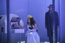 Der Plot ist schnell erzählt: Der wenig erfolgreiche Privatdetektiv Stone, immer klamm und auf dem falschen Fuß – Kollege Wilsberg lässt grüßen – erhält endlich einen lukrativen Auftrag. Die Gattin Alaura des machtbewussten Filmproduzenten Buddy Fidler will ihn beauftragen, ihre „entführte“ Stieftochter Mallory zu suchen. Stone zögert, ein Scheck überzeugt ihn. Währenddessen sitzt in einer Dachkammer der ebenfalls von einem mageren Fettnäpfchen in das nächste stolpernde Romanautor Stine, der für Fidler ein Drehbuch schreiben soll, eben diese Szene mit Stone. Die Parallelhandlungen, in die auch Produzent Buddy in Geldgebermanier hineinpfuscht, verwickeln, verdrehen und überkreuzen sich, bis niemand mehr so richtig weiß, wer eigentlich für wen arbeitet, wer zu wem hält und wer mit wem … Schläger tauchen bei Stone auf und erklären ihm auf handgreifliche Weise unverblümt seine Aufgaben, der ehemalige Kollege und noch Lieutenant Muños nimmt ihn aufs Korn. Und dann sind da noch die Frauen, um die es eigentlich geht … Zahlreiche Handlungsstücke werden als Rückblenden erzählt, die Songs liefern die Background-Interpretationen. Zitate aus früheren Schwarzweiß-Filmen oder Varieteshows begleiten die Rückblenden mit teils gekonnt frechen Parodien, von denen die Harmonists-Persiflage mit dem weiß befrackten und herrlich überspielten Frontsänger Jimmy Powers herausragt, den der Musical erfahrene Thomas Klotz spielt. Thomas Winter hat dieses Musical, dessen Handlung sich über fast drei Stunden hinzieht, flott und publikumsnah inszeniert. Neben einigen kleineren Gags bringt die Regie aber Musical as usual. Das gilt auch für die Musik, die William Ward Murta mit einem Teil der Bielefelder Philharmoniker stilgerecht und mit viel Spiellust präsentiert, deren Klang musicaltypisch gute Laune verbreitet. Ulv Jacobsen hat Bühne und Kostüme in die Zeit der wilden 1920-er verlegt, in denen die Fronten zwischen den Guten und den Bösen in Amerika schon mal durcheinander gerieten. So wandert auch – durchaus konsequent – die einzige Pistole des Stückes durch die verschiedensten Hände. Die in mehreren Songs und einigen Szenen angespielte Erotik kommt über die sprichwörtlichen schwarzen Dessous und Strapse nicht hinaus und bleibt eher lauwarm. In durchweg hellen Stimmlagen und erfreulich gut verständlichem Text präsentieren die Protagonisten die Colemanschen Songs. Alexander Franzen bringt einen dunkleren, kräftigen und auch in der Darstellung überzeugenden Stone, Veit Schäfermeier gelingt der sich selbst im Wege stehende, verkannte Autor Stine mit heller Songstimme bestens, herausragend Norbert Wendel in der beherrschenden Rolle des Filmproduzenten Fidler. Brigitte Oelke sticht stimmlich wie darstellerisch aus den weiblichen Rollen hervor und bringt die seriöse Ehefrau ebenso realistisch wie die erfahren Dame von Welt oder die von Sehnsüchten getriebene, verkannte Geliebte. Roberta Valentini als Sekretärin Bobby und Annabella Mierzwa als schräge, „vermisste“ Stieftochter und Suchobjekt Mallory zeichnen mit hellen, bisweilen schrillen Stimmen ihre Figuren. Die eher flache Handlung des Stückes wird auch durch die Rückblenden kaum spannender und wirkt mit ihren nahezu drei Stunden in die Länge gezogen, woran auch die Regie nichts ändert. Wirken einige der Songs, etwa Was du nicht über Frauen weißt oder Allein wär ich gar nichts durchaus flott, bleibt der gesamte musikalische Eindruck locker und unverbindlich. Ihre größeren Hits haben Cy Coleman, Larry Gelbart und David Zippel erst in späteren Jahren am Broadway gelandet. Erklärter Publikumsliebling ist das Gesangsquartett der Cologne Voices, das mit herrlicher Überzeugung und mehr als zehnjähriger Erfahrung Stimmen der 1920-er auf die Bühne und Stimmung ins Theater bringt. Der als Frontsänger und Conferencier hinzu stoßende Thomas Klotz wird zum Liebling des Publikums.