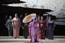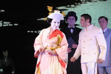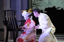 Zart und duftig hat Bühnenbildner Heinz Balthes die „japanischen“ Schiebewände gestaltet, die – je nach Bedarf – häusliche Nähe oder Landschaftsferne bis hin zum Blick auf den mächtigen Kreuzer „Abraham Lincoln“ freigeben. Innerhalb dieses zauberhaften Rahmens, einschließlich der geschmackvollen Kostüme von José-Manuel Vázquez, schafft Regisseur und Intendant John Dew am Staatstheater Darmstadt ein intimes, höchst anrührendes Seelendrama um die Geisha Cio-Cio-San, genannt Madame Butterfly, die vor lauter Sehnsucht nach Liebe und einer Befreiung aus der Teehaus-Enge an den Falschen gerät: Marineleutnant Pinkerton, der Liebe vorgaukelt, wo ihm doch nur ein flüchtiges Abenteuer vorschwebt, wie er es in jedem Hafen erhofft, den sein Kriegsschiff ansteuert. Denn Yankees scheren sich nicht um kulturelle Unterschiede und Identitäten. Warnungen schlägt er in den Wind, und wenn am Ende seine Geliebte sich entleibt, rennt er davon.