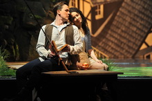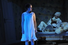Marius Felix Lange hält sich mit „Zeitgenössischem“ in seiner Komposition zurück. Immer wieder bedient er im besten Sinne Hörgewohnheiten, ohne auf moderne Einflüsse zu verzichten. So sind komplexe, anspruchsvolle Rollen entstanden. Das Publikum der Uraufführung am Vortag hat es ihm mit frenetischem Applaus gedankt. „Man fühlt sich für einen Moment wie ein Popstar“, zeigt Lange sich tief beeindruckt. Und wüsste man nicht ganz genau, dass es nicht stimmt, würde man Stein und Bein schwören, dass er die Rolle der Lena Alma Sadé auf den Leib geschrieben hat. Eine Person in der Pubertät darzustellen, dürfte so ziemlich zum Schwierigsten gehören, was man sich an Rolle vorstellen kann. Die Abgründe zwischen dem Schwanken der Seele, der Entdeckung des Körpers, mächtiger Hormonschübe und einer verbliebenen kindlichen Naivität auszuloten, hat schon manchem Jungschauspieler seine Grenzen aufgezeigt. Sadé gelingt es meisterhaft. Dazu kann sie alle Möglichkeiten ihrer Stimme zelebrieren. Der Komponist verlangt ihr einiges ab. Vom zarten Schmelz, der von Poesie erzählt, bis zu den klaren Höhen, die sich in wenigen Passagen gegen das Orchester behaupten müssen, bewältigt die Sängerin die Anforderungen tadellos. Dmitri Vargin zeigt einen sehr natürlichen, authentischen Leander, der Lena wunderbar ergänzt. Fantastisch ist die Stimme von Florian Simson als Mond mit einem sehr modern wirkenden, metallischen Klang, ohne ins Künstliche abzudriften. Auch er darstellerisch ein Vergnügen. Mindestens ebenso wie Totengräber Günes Gürle, der das Böse und Finstere seiner Rolle nicht nur mit seinem Bass bestätigt, sondern auch auf Schritt und Tritt zeigt. Elegant die Erhabenheit und Schönheit in der Stimme von Elisabeth Selle als Alba. Gleichermaßen stark besetzt die Nebenrollen; für die Eltern leistet man sich gar den Luxus einer Susan McLean und eines Bruno Balmelli. Der Chor der Deutschen Oper am Rhein ist von Christoph Kurig ordentlich einstudiert.