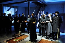 Der Chor bildet in dieser Oper den roten Faden, ist Erzähler und Akteur im Wechsel. Dass der Chor dies auch akustisch so gut darstellt, verdankt er der akribischen Anleitung durch Andreas Kettelhut. In der zweiten Version tritt der Chor als Trauergemeinde auf, doch auch die Trauerzeremonie wird zur Eröffnung eines neuen Horizontes. Die ambivalente Einheit von statischem Auftreten des Chores und der gesanglicher Varianz: das hat Andreas Kettelhut mit seinem Chor zu einer großen stimmlichen Leistung erarbeitet. Die Chor-Trauergäste: Manuel Meyer als Pfarrer, Reinhardt Becker, Ralph Heiligtag, Tobias Schäfer und Jan Rouwen Hendriks überzeugen durch düsteren Auftritt und bilden das puritanische Milieu ab, das den Hoffnungen und Sehnsüchten der Frauen gegenüber steht.
