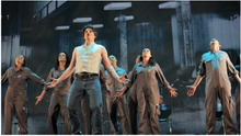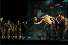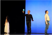 Das als Chor fungierende fein abgestimmte Vokalensemble hat in den fröhlich von Carlos Carraquilla und Guedes choreografierten Ensembleszenen sichtlich Spaß und weiß durch ausdrucksvolle Gestaltung das Bühnengeschehen zu beleben. Dass hier keine ausgebildeten Tänzer agieren, stört somit nicht. Die Videoprojektionen von Frank Sippach und Samuel Bruder sowie das Lichtdesign von Michael Bischoff dienen als Bühnenbild, so dass mit einem Schreibtischstuhl, Notenblättern und den schlichten Kostümen als Requisiten minimalistisch, aber dennoch plastisch gespielt werden kann.