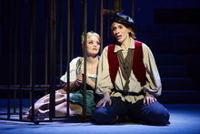 Schon hier aber, während den ersten, fein abgestuften Trommelwirbeln, dem darauf folgenden martialischen Marsch, dem vibrierenden Klangzauber aus dem Orchestergraben, horcht das Premierenpublikum auf: Das Philharmonische Orchester Würzburg spielt mit Präzision, Hingabe, packenden Steigerungen, runder Fülle, aber stetiger Durchsichtigkeit, nie zu laut, nie zu schnell, dass es eine Wonne ist. Kein Wunder: Am Pult steht ein wahrer Rossini-Spezialist, Giovanni Battista Rigon, derzeit am Teatro Fenice in Venedig im Barbiere beschäftigt. So können sich die Sänger im Einverständnis mit dem Orchester bestens entfalten, ohne zugedeckt zu werden, und die einzelnen Instrumente prunken mit ihren Klangfarben. Der erste Akt der Oper beginnt dann festlich mit dem Jubelchor Was für ein glücklicher Tag, und der zweite bietet dazu den Kontrast mit Was für ein schrecklicher Tag, der mit dem Trauermarsch ganz andere Gefühle als am Anfang hervorruft, sicher von Rossini beabsichtigt. Der Chor aber, sehr individuell bewegt und ständig auf der Bühne beschäftigt, gefällt sehr mit klanglicher Ausgewogenheit und angemessener Fülle sowie feinen Nuancen, hervorragend einstudiert von Michael Clark. Wunder aber vollbringen auch die Sänger in ihren mit Schwierigkeiten wie Registerwechseln und Koloraturen rauf und runter gespickten Partien. Dass das Würzburger Haus das mit eigenen Kräften und zwar bestens leisten kann, ist wohl der musikalischen Leitung zuzuschreiben. Lediglich Giulia Bolcato als Ninetta stammt nicht aus dem eigenen Ensemble. Die 23-jährige Italienerin ist eine Entdeckung des Würzburger GMD Enrico Calesso. Die junge Sopranistin passt nicht nur äußerlich wunderbar zu dem reinen, unschuldigen Mädchen; ihre sehr helle, äußerst bewegliche Stimme meistert mühelos alle Höhen und Sprünge ihrer Partie, und die Verzierungen laufen locker auf der Linie. Ninetta ist die moralisch gefestigte Bastion innerhalb der Dorfgemeinschaft; sie bleibt ihren Prinzipien treu, liebt nur zwei Menschen, Giannetto, ihren Verlobten, einen schneidigen Soldaten, und ihren Vater, einen verwundeten, aber innerlich integren Deserteur. Joshua Whitener gibt den Giannetto als verliebten jungen Mann, singt ihn mit dem nötigen Schmelz und tenoraler Fülle. Daniel Fiolka als Vater Fernando scheint von Anfang an von schicksalhafter Trauer bestimmt, die sich erst am Ende durch das Edikt des Königs glücklich löst, und mit seinem schön timbrierten, kräftigen Bariton kann er auch die schmerzvollen Gefühle ausdrucksvoll gestalten. Die künftigen Schwiegereltern der Ninetta werden recht bodenständig dargestellt; Barbara Schöller, mit nicht allzu kräftigem, aber sicheren Mezzosopran singend, gibt eine etwas spießige Kleinbürgerin Lucia, der Besitz alles gilt und die zu spät merkt, dass sie ihre Schwiegertochter beinahe dem Verderben ausgeliefert hat. Ihre Reue kommt gerade noch rechtzeitig, während ihr Mann Fabrizio von Anfang an zu Ninetta gehalten hat; Ji-Su Park singt ihn mit angenehm klingender Stimme. Eine besonders wichtige Rolle hat Pippo, der junge Bauernbursche und Freund Ninettas, der schließlich entdeckt, dass die Elster ihr Diebesgut im Kirchturm versteckt hat und so für ein glückliches Ende sorgt. Sonja Koppelhuber begeistert in dieser Hodenrolle durch ihr lebendiges Spiel und vor allem durch ihren runden, vollen, wohl klingenden Mezzosopran. Neben diesen „tragischen“ Personen gefallen auch die komisch-grotesken, so der Händler Isacco, Fabian Christen, mit bewusst flacher, schneidender Stimme und natürlich der eingebildete Podestà. Mit wuchtigem, starkem Bass, übertrieben würdevollem Auftreten und schmierigen sexuellen Angeboten reizt Johan F. Kirsten seine Machtposition bis zum Letzten aus. Doch das Gute siegt: Als seine Machenschaften am Schluss entlarvt werden und er fliehen muss, wirft ihm sein übereifriger, allzu willfähriger Diener Giorgio, David Hieronimi, den Koffer hinterher. Dabei trifft er leider nur die Wand – ein Versehen, ein Wink des Schicksals? Denn das Böse ist wohl nur für kurze Zeit aus der Gemeinschaft vertrieben.